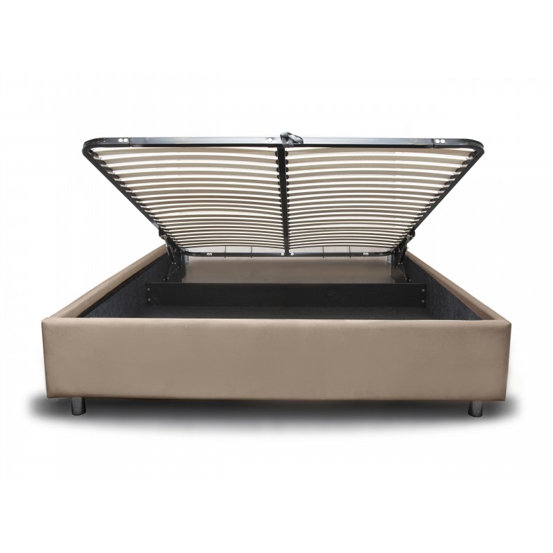 Gultas komplektācijā IETILPST paceļams metāliskais rāmis, zem kura ir ietilpīga veļas kaste mantu un gultasveļas glabāšanai.