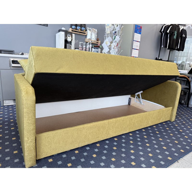 Ērta tahtiņa, kas var būt lieliska guļamvieta kā bērniem, tā pieagušajiem. Roku balsti abos tahtas galos, ne vien kalpos kā ērts atbalsts, sēžot tajā, bet arī noturēs spilvenu un segu, lai tie miega laikā "neaizmūk". Matrača pamatnē izveidota perforācija, papildus gaisa apmaiņai, kas mazinās svīšanu miega laikā un ventilēs Jūsu guļamvietu. Tahta aprīkota ar ietilpīgu veļas kasti. Paceļamais, pneimatiskais matrača pacelšanas mehānisms nodrošinās klusu, vieglu un plūsotšu piekļuvi veļas kastei. Aizmugures sieniņa pasargās Jūsu sienu no bojājumiem.